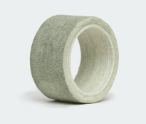 When the aluminum profile comes out of the extrusion press, the temperature is approximately 550 °C (1022°F). Graphite was thought to be the only product available to withstand the high temperatures of the extrusion profile. A new high–tech fiber, PBO, is now incorporated into our high temp roller sleeves. The needle-punched roller combines PBO and KEVLAR® layers that are the ideal product to use for the initial extrusion area and run-out table. It is the density of the PBO material within the roller sleeve that dictates its service life rather than the thickness. The high density PBO layer enables the roller to work continuously at temperatures of 550 °C (1022 °F), and at the same time to withstand the abrasion from different shapes of the profile.